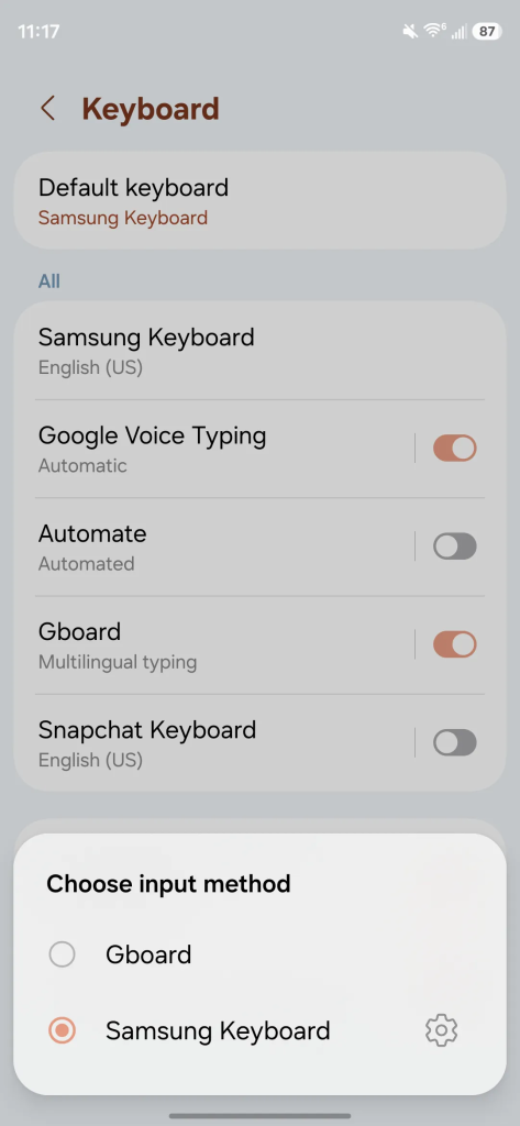 El teclado de Samsung es uno de los elementos que más rápido conviene revisar. Aunque cumple su función básica, la corrección automática falla más de lo esperado y el dictado por voz no siempre interpreta bien lo que dices. Esto provoca errores constantes en mensajes y textos largos.