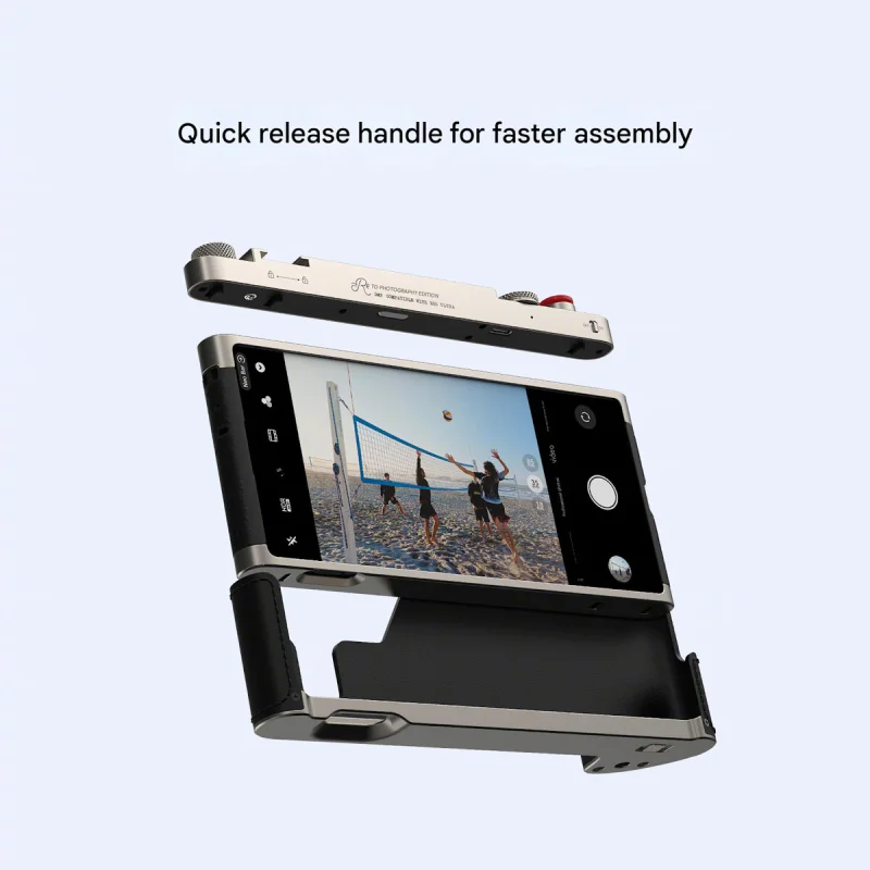 El nuevo Photography Kit para el Nubia Z80 Ultra es un guiño directo a los nostálgicos. Este accesorio incluye un botón físico de disparo, perillas superiores y un mango desmontable con liberación rápida, ofreciendo la sensación de sujetar una cámara tradicional.