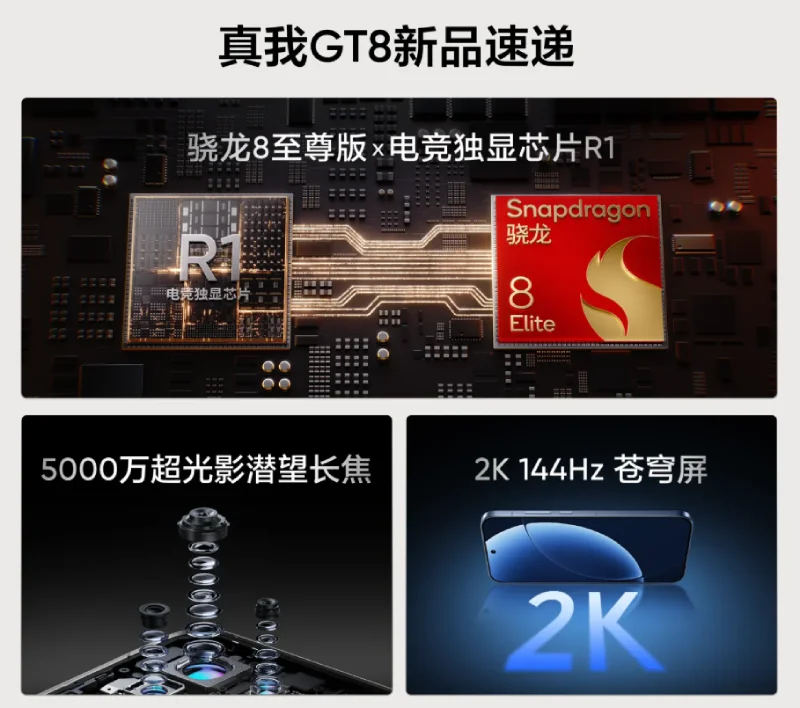 La compañía ya ha revelado parte de su hoja técnica, y hay motivos para el hype. El Realme GT 8 integrará el Snapdragon 8 Elite, el chip tope de gama del año pasado, pero aún una bestia en rendimiento. A este se le suma un chip gráfico independiente R1, pensado para mejorar los FPS en juegos.