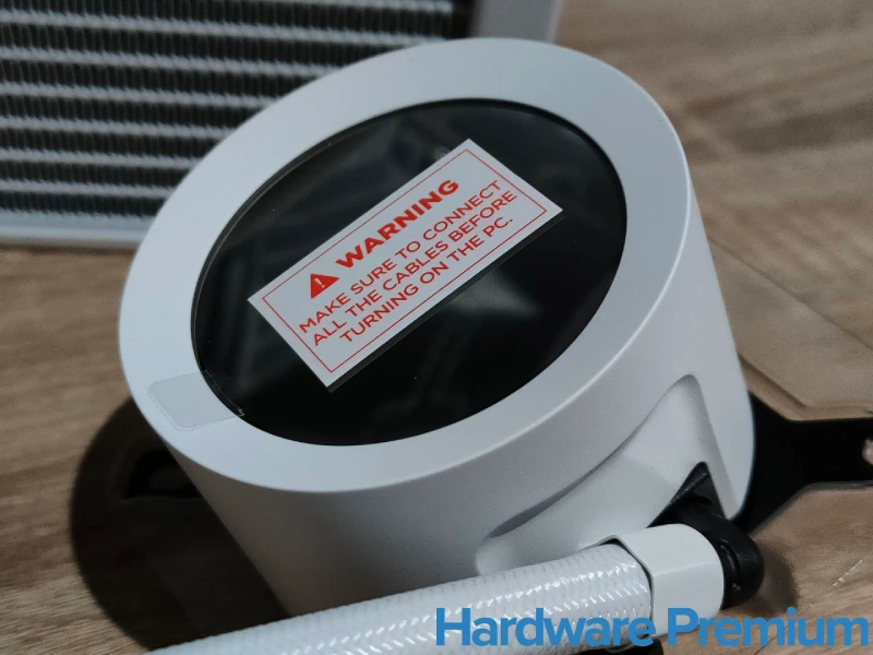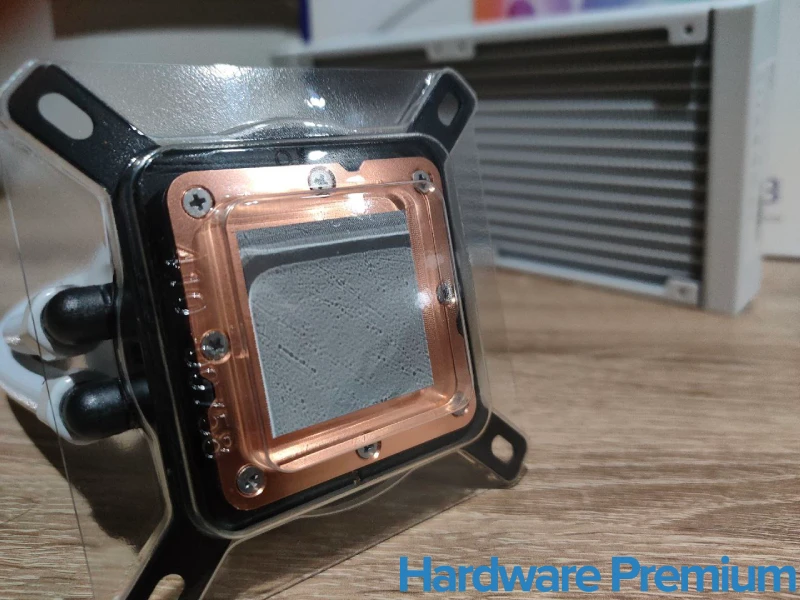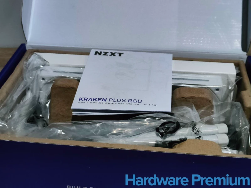 Al abrir la caja, el interior mantiene el mismo nivel de refinamiento. El sistema de refrigeración llega perfectamente protegido por moldes de pulpa prensada, un material más ecológico y resistente que el tradicional foam, garantizando que tanto el radiador como la bomba y los tubos no sufran daños durante el transporte. Cada componente viene en su propia bolsa plástica, evitando roces y acumulación de polvo. En la parte superior, se ubica el manual de instalación perfectamente centrado, aportando una primera impresión de orden y calidad.