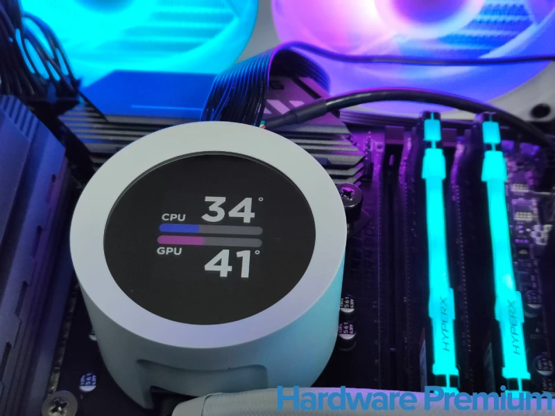 La personalización es el gran punto fuerte. Desde el software CAM se pueden mostrar GIFs, logotipos, estadísticas del sistema (CPU, GPU, temperaturas, uso o FPS) o incluso pequeños vídeos.