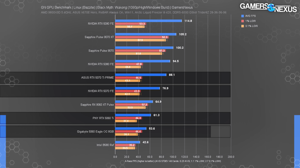 Una advertencia clave: no se deben comparar sus cifras con las de Windows, porque los métodos de captura, APIs y condiciones no son idénticos. El objetivo no era un duelo de sistemas operativos, sino entender qué GPU funciona mejor si tu PC usa Linux.