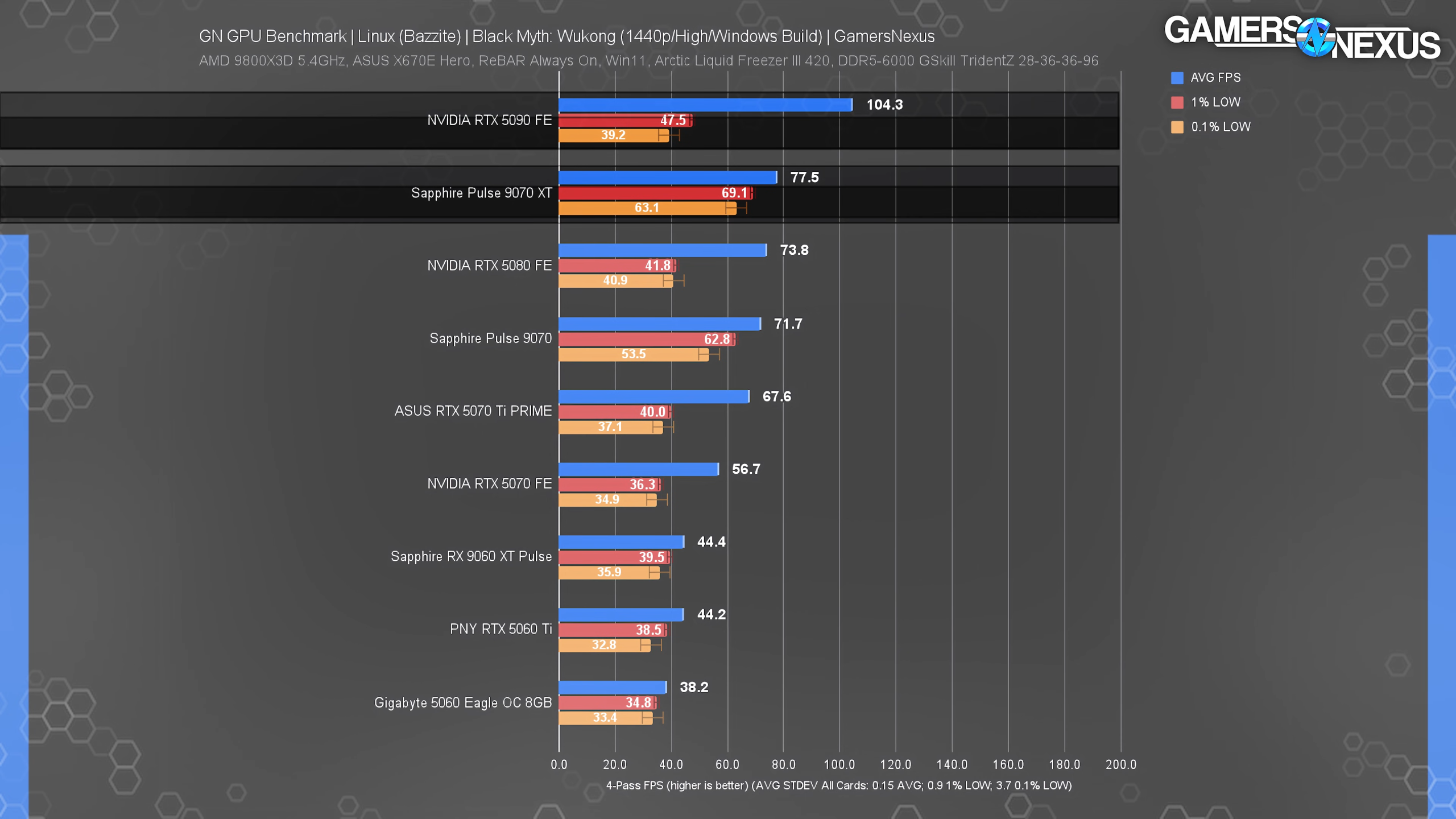 Una advertencia clave: no se deben comparar sus cifras con las de Windows, porque los métodos de captura, APIs y condiciones no son idénticos. El objetivo no era un duelo de sistemas operativos, sino entender qué GPU funciona mejor si tu PC usa Linux.