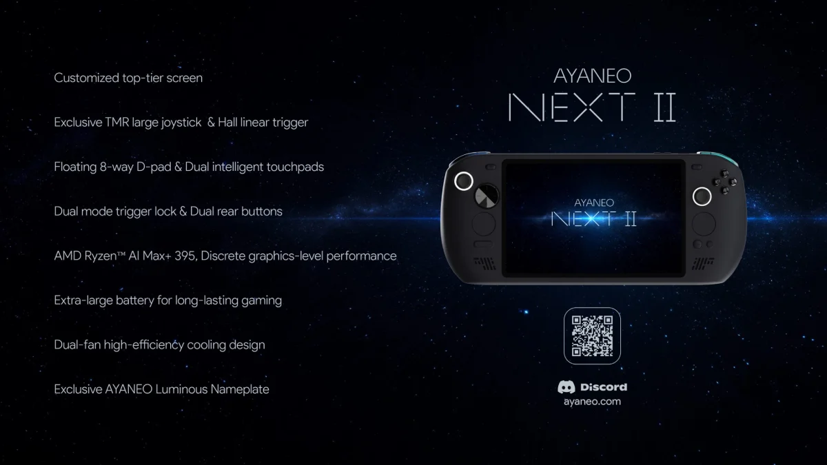 Ayaneo ha revelado oficialmente las especificaciones de la pantalla de su próxima NEXT II. La elección de un panel 2400 × 1504 no solo confirma un formato poco habitual en consolas portátiles, sino que además despeja dudas, apostará por un OLED pensado para lucir distinto.