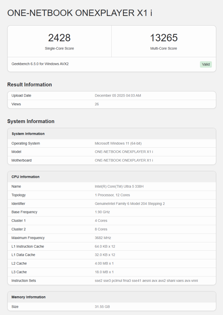 Por si fuera poco, el dispositivo aparece con ese detalle en la base de datos, lo que sugiere que OneXPlayer no solo quiere ser la primera en adoptar Panther Lake, sino también en exprimirlo.