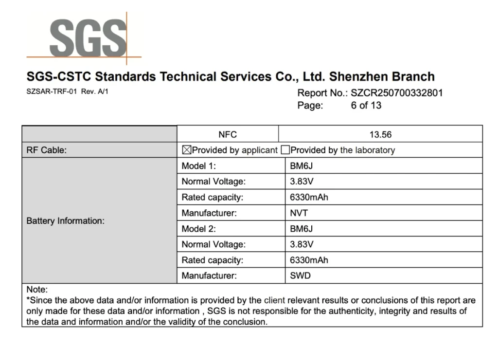 Contará con una batería nominal de 6.330 mAh, que Xiaomi presentará como 6.500 mAh.