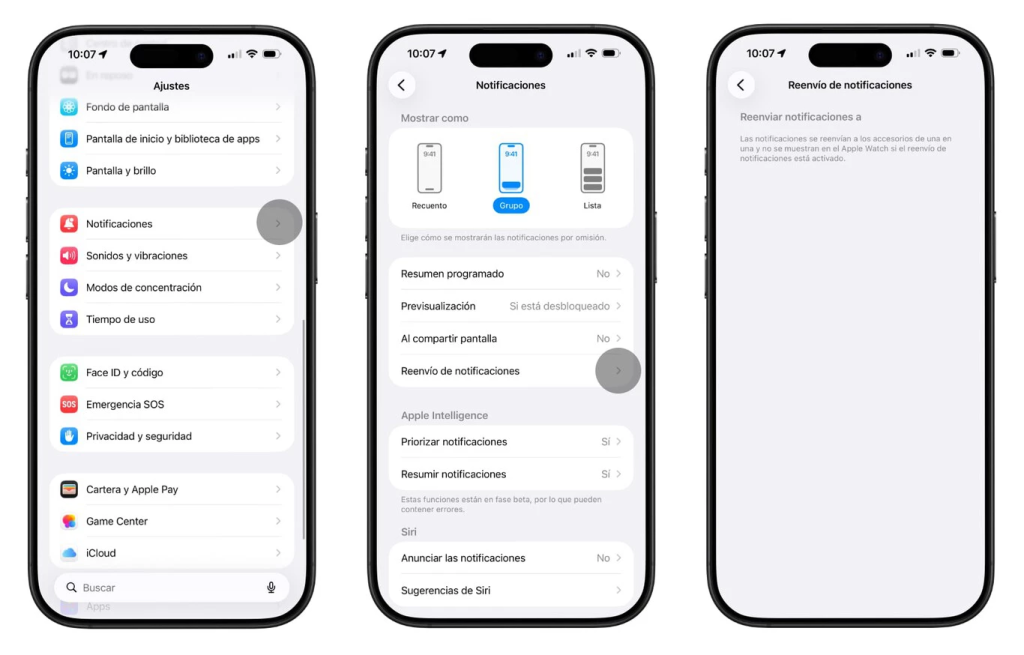 Por si fuera poco, iOS 26.3 también introduce cambios que afectan al día a día y al cumplimiento normativo en la UE. El más relevante es el Reenvío de notificaciones: ahora, las alertas del iPhone pueden llegar a relojes y pulseras de terceros, una función alineada con la DMA y largamente esperada por quienes no usan Apple Watch.
