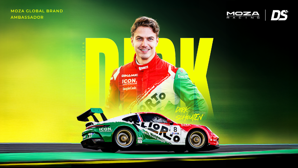 El otro gran anuncio llega con nombre propio. MOZA ha presentado a Dirk Schouten como nuevo embajador global. No es una elección casual. Schouten empezó en el sim racing antes de dar el salto a la competición real, donde se proclamó campeón de la Porsche Carrera Cup Benelux en 2024 y logró la victoria en la Rookie Race del GP de Mónaco 2025 dentro de la Porsche Supercup.