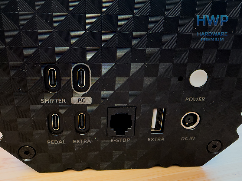 El puerto para pedales reúne todo el cableado y ayuda a mantener el espacio ordenado, algo muy útil en escritorios pequeños. Junto a él está el conector para shifter y accesorios, lo que deja claro que el VD6 está pensado para ampliarse con el tiempo.