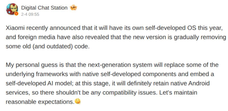 La evolución de HyperOS no está ocurriendo de forma brusca, sino mediante una transición medida. Según información compartida por el filtrador Digital Chat Station, HyperOS 4 incorporará una arquitectura desarrollada internamente por Xiaomi, sustituyendo progresivamente componentes heredados de MIUI que aún permanecen activos en versiones actuales.