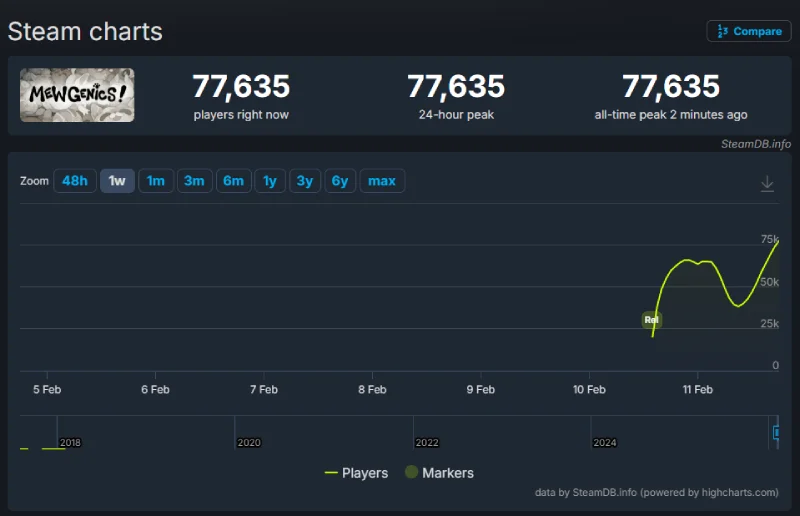 Mewgenics ha arrancado su andadura en Steam con más de 4.200 reseñas marcadas como “Extremadamente positivas”. Los datos de SteamDB destacan que el juego ha alcanzado un pico de más de 77.000 jugadores simultáneoss.