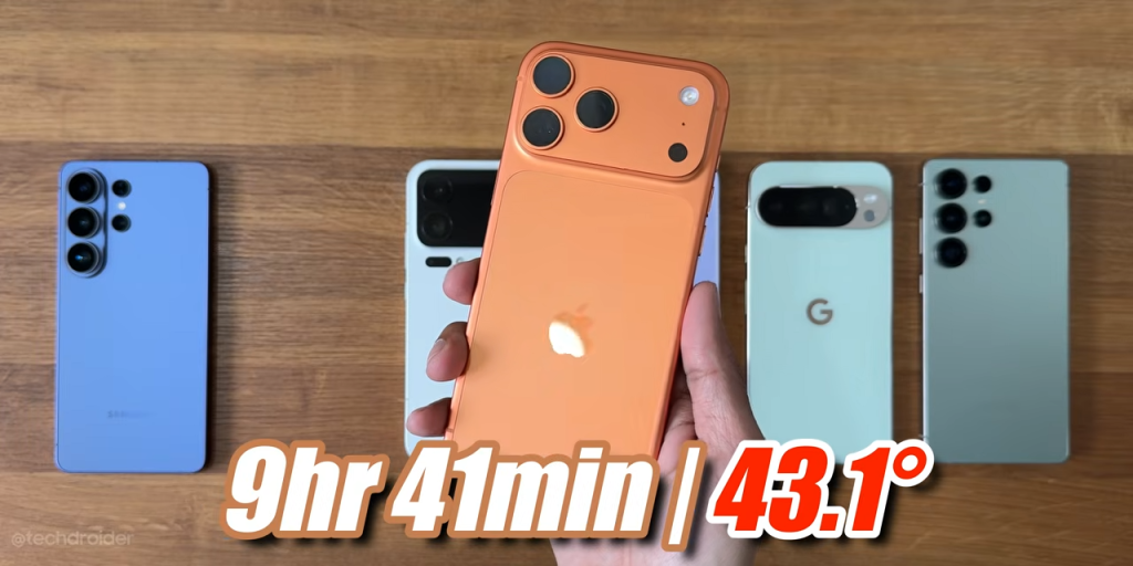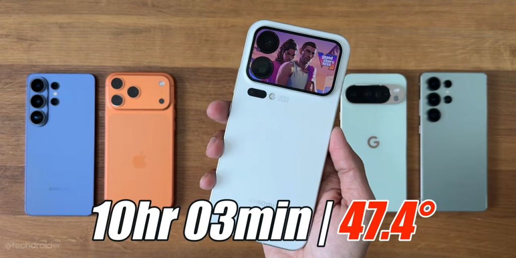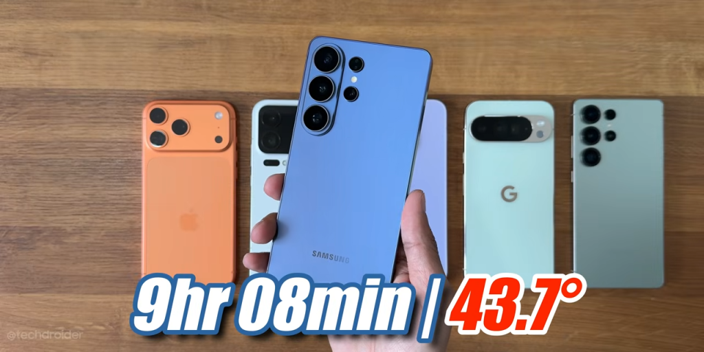 En la prueba de autonomía publicada por el canal Tech Droider, el S26 Ultra alcanzó 9 horas y 8 minutos antes de apagarse. No es un mal registro en términos absolutos. De hecho, supera al Google Pixel 10 Pro XL, que se quedó en 8h22m.