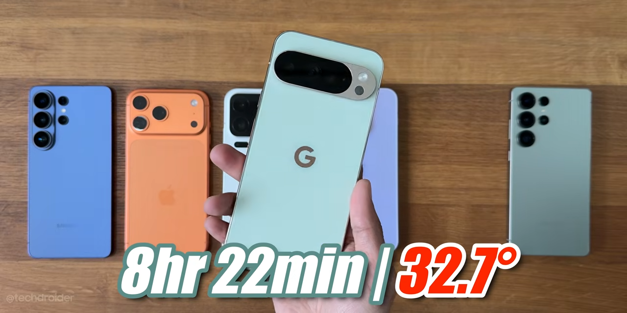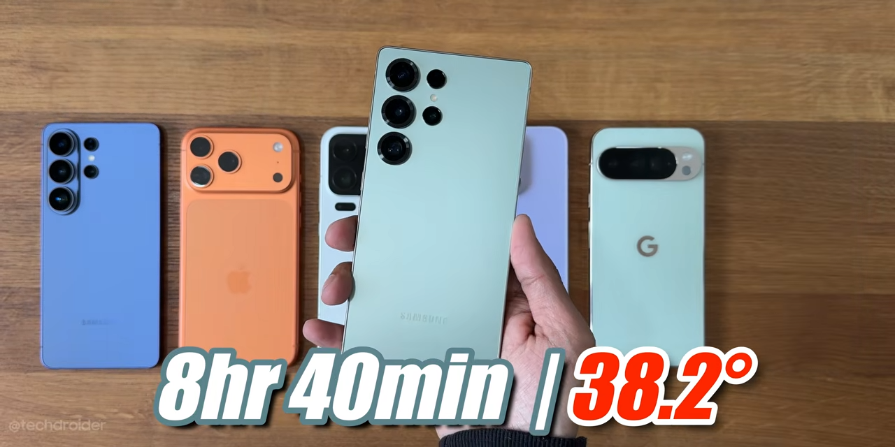 En la prueba de autonomía publicada por el canal Tech Droider, el S26 Ultra alcanzó 9 horas y 8 minutos antes de apagarse. No es un mal registro en términos absolutos. De hecho, supera al Google Pixel 10 Pro XL, que se quedó en 8h22m.