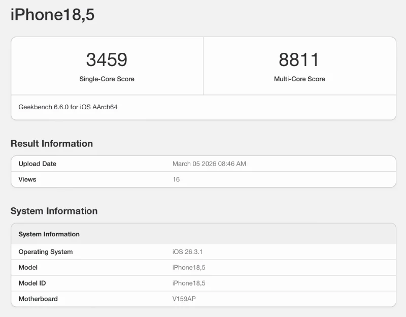 En Geekbench, observamos que el iPhone 17e obtiene: