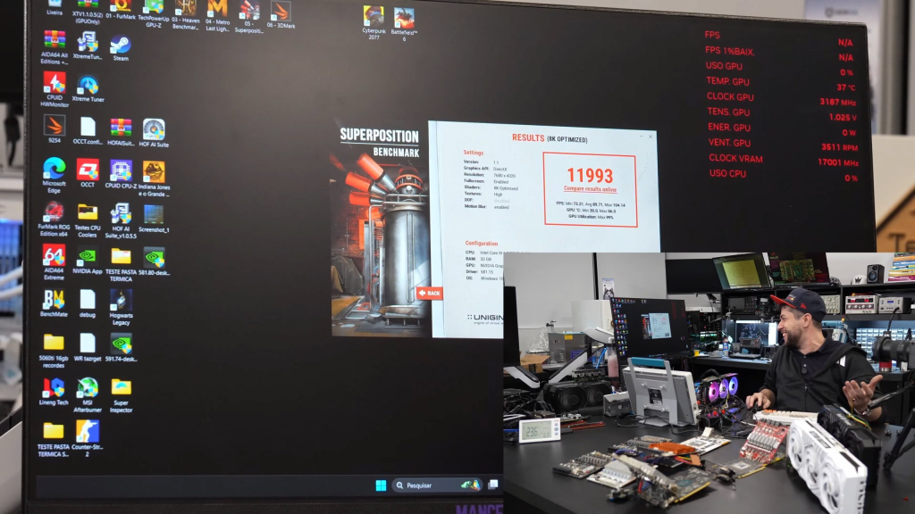 Sin embargo, el aumento de rendimiento evidenciaba que la tarjeta funcionaba realmente a frecuencias superiores. Según Teclab, la memoria llegó a superar 18.000 MHz, lo que equivale a más de 36 Gbps efectivos.