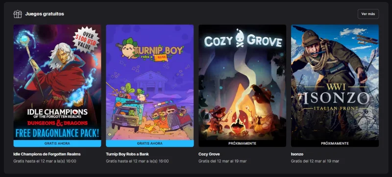 Esta selección gratuita cambia cada semana, y una vez finalizada la promoción, los juegos pasarán a tener precio. Mantente alerta y vuelve cada domingo para descubrir más y nuevos regalos. ¡Tu biblioteca te lo agradecerá!