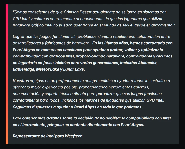 Qué ha pasado con Crimson Desert y las GPUs Intel