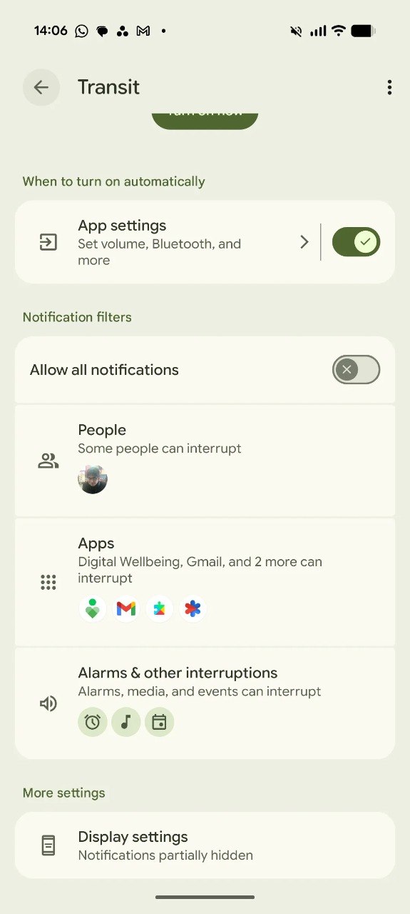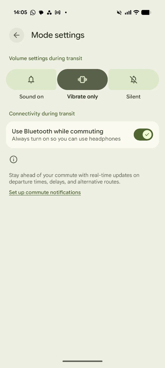 El modo de transporte fue introducido como parte del lanzamiento de marzo de Pixel, pero ahora está disponible para todos. Este modo permite personalizar cómo se comporta tu teléfono durante los trayectos, como ir al trabajo o a casa. También ayuda a configurar alertas en tiempo real sobre tu viaje.
