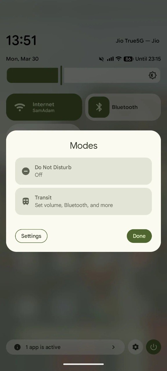 El modo de transporte se encuentra dentro del sistema de modos más amplio de los dispositivos Pixel. Puedes acceder a él desde el icono de Modos en el menú de configuración rápida o desde la aplicación de Configuración. Es el mismo lugar donde encontrarás otros modos, como el modo de no molestar o el modo de conducción.