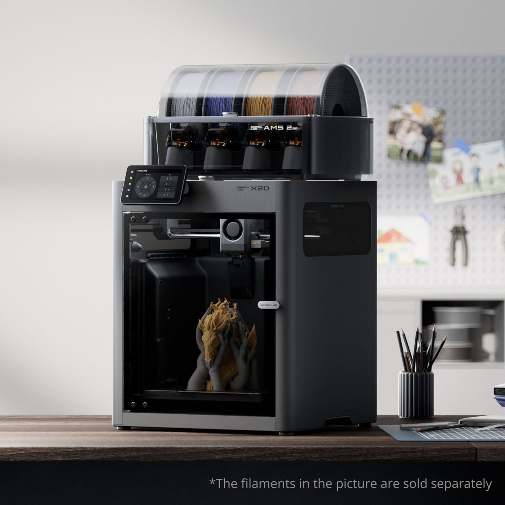 Bambu Lab enmarca la Bambu Lab X2D dentro de un sistema más amplio: Bambu Studio, Bambu Handy, MakerWorld, Maker’s Supply, Maker’s Lab y su programa de crowdfunding para diseñadores. La compañía no presenta estos elementos como extras, sino como parte de una misma cadena de uso. Los filamentos se perfilan para hardware concreto y los modelos llegan con ajustes validados, de forma que el flujo entre diseño e impresión se acorta desde el principio.