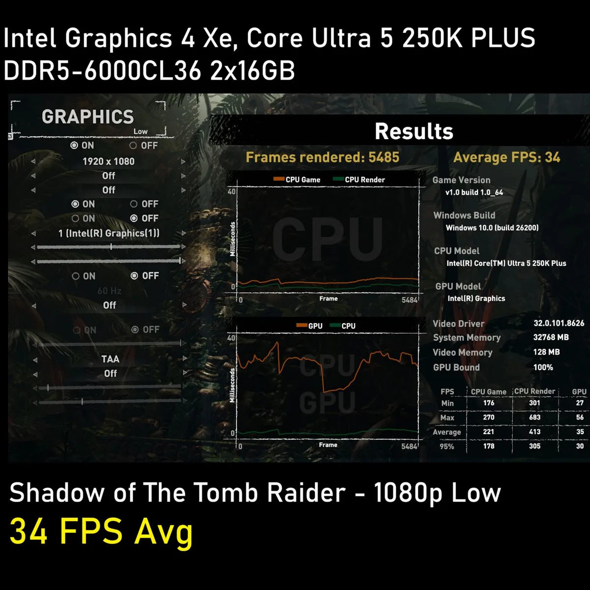 El Intel Core Ultra 250K Plus no monta una gran gráfica integrada, pero su iGPU de 4 Xe cores ya da algo más que salida de vídeo. Según las pruebas de Alva Jonathan, la solución integrada rinde por encima de Steam Deck y hasta permite jugar en 1080p con ajustes bajos en varios títulos. Para un chip de escritorio, el dato no es menor.