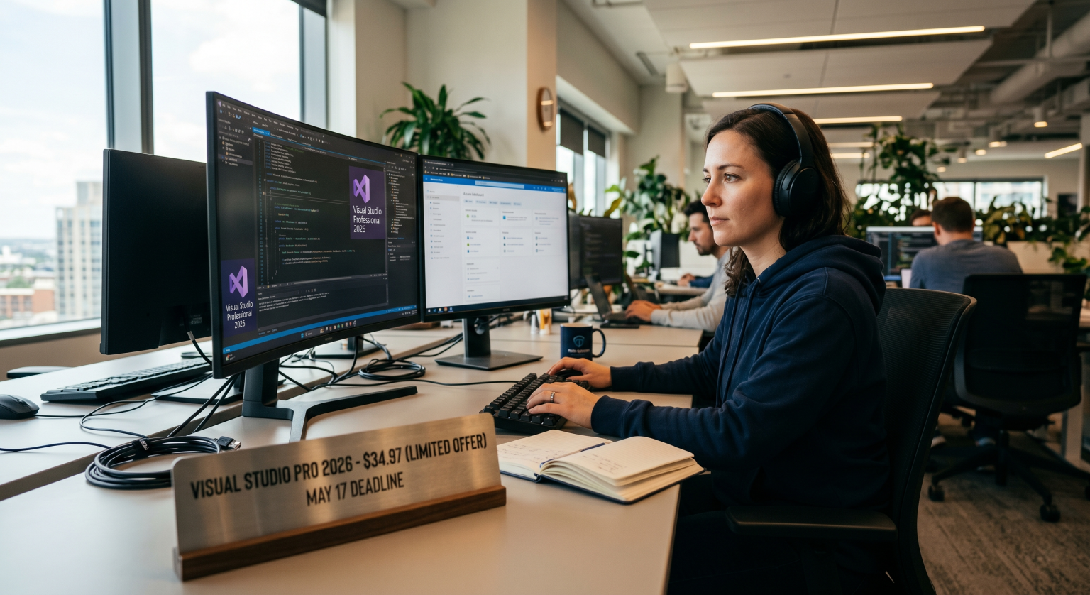 Microsoft Visual Studio Professional 2026 acaba de desplomarse hasta los 34,97 dólares (frente a su precio habitual de 499,99$), pero la ventana de oportunidad se cierra el próximo 17 de mayo. Si buscas la mejor oferta en una Licencia Visual Studio Professional 2026, este es el momento. Este lanzamiento profundiza en la obsesión de Redmond por la velocidad, el trabajo en equipo y una programación asistida por IA que se siente más como un copiloto que como una simple herramienta. Construido sobre una arquitectura sólida de 64 bits, esta versión está diseñada para devorar bases de código masivas y proyectos empresariales que harían temblar a versiones más antiguas del IDE más famoso del mundo.