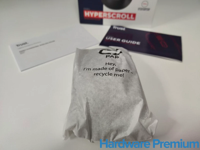Dentro de la caja, el contenido trae lo mínimo esencial: el ratón viene protegido dentro de una bolsa de papel reciclado, acompañado por el manual de usuario y la documentación de garantía. No hay excesos de plástico ni acolchados innecesarios, lo que refuerza el enfoque sostenible del producto. Aunque más adelante hablaremos de una pequeña sorpresa incluida, la cual no es un accesorio al uso.