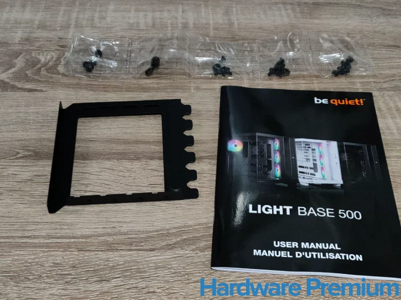 Sin embargo, en la unidad analizada encontramos un pequeño desajuste respecto a la guía oficial. Los tornillos de placa base y HDD presentan un diseño distinto a la misma. Para colmo, se encuentran en la misma cantidad (9 unidades), lo que dificulta distinguirlos y genera cierta confusión durante el montaje. Todo apunta a un posible defecto de embalaje o a una tirada preliminar, algo que be quiet! probablemente haya corregido en sus unidades comerciales.