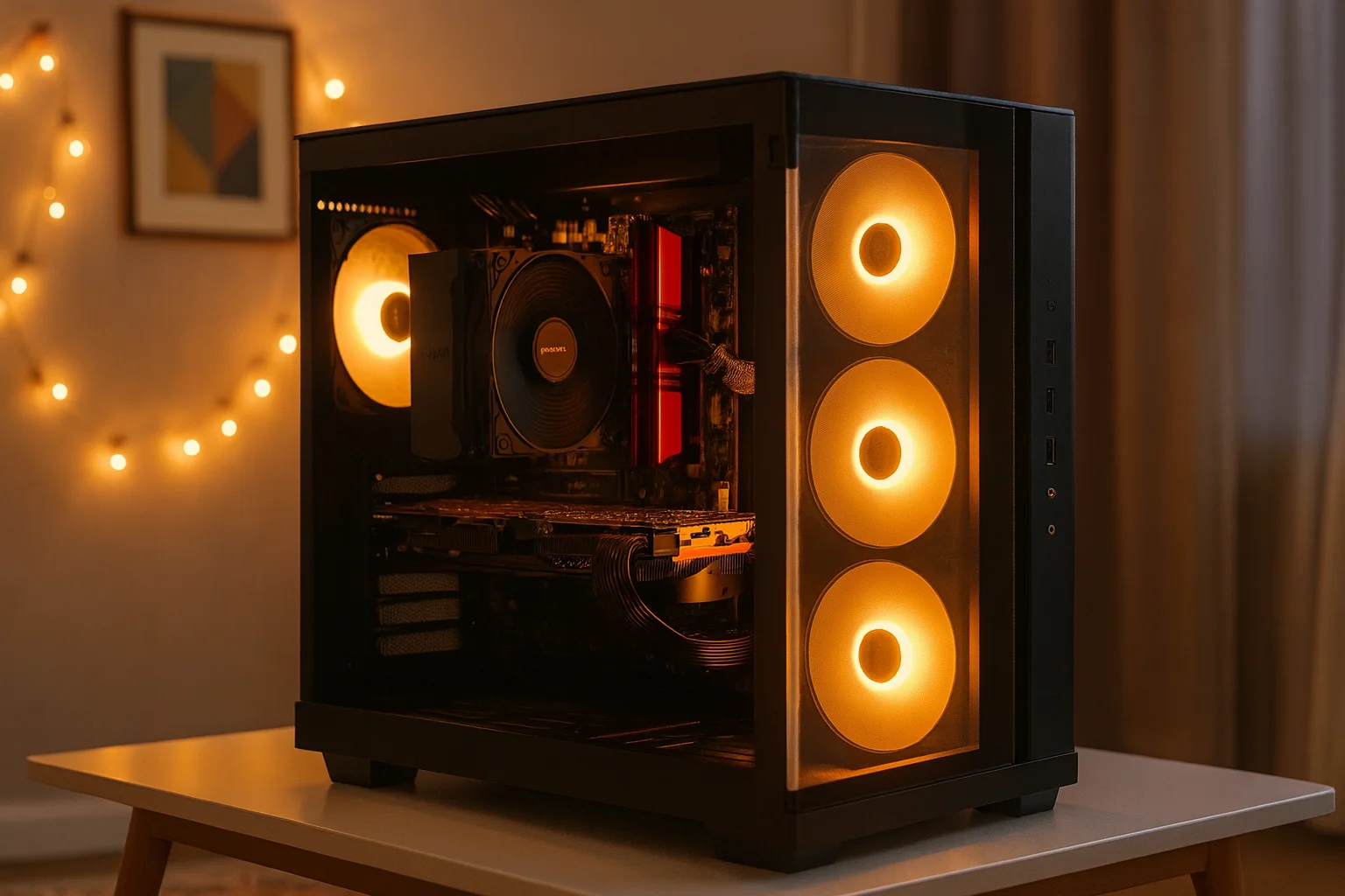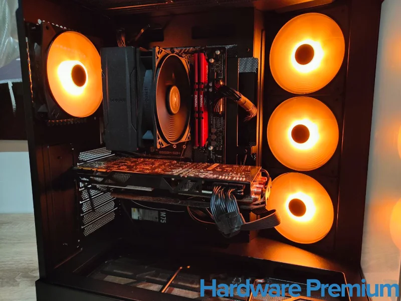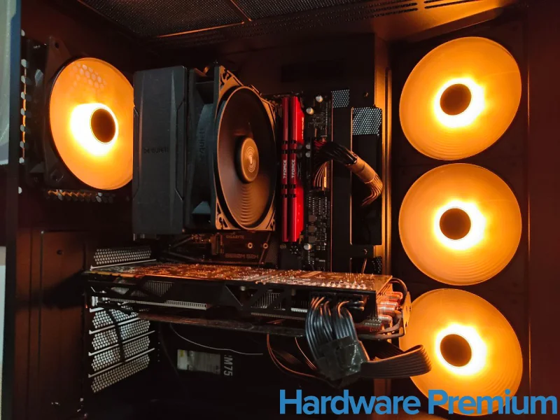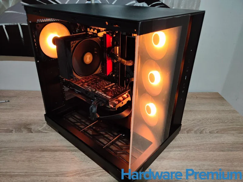 En términos estéticos, el resultado final es simplemente espectacular. Con los ventiladores encendidos, el interior cobra vida con una iluminación cálida que realza cada componente. Es una torre que no solo rinde bien, sino que también invita a presumir de montaje.