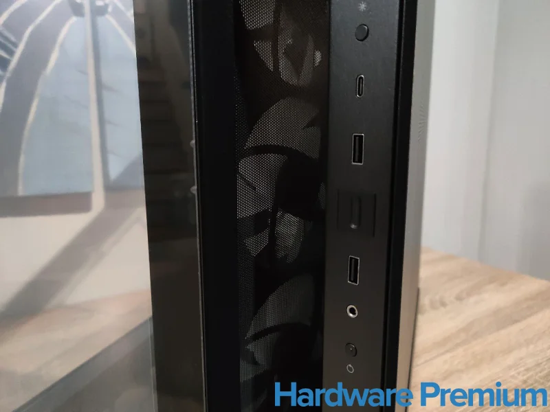 La disposición es ergonómica y visualmente limpia, con un marco texturizado que encaja perfectamente con el diseño general del chasis. Sin embargo, la iluminación del botón de encendido sobrepasa por los USB, un pequeño fallo menor.