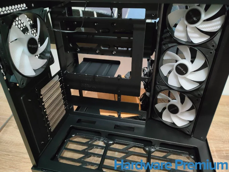 Más allá de estos detalles, el conjunto mantiene un aspecto impecable: los bordes están bien acabados, el frontal combina ventilación con estética, y la base del chasis da una impresión de estabilidad firme. En resumen, una torre visualmente sobresaliente, que combina diseño y practicidad, aunque con algunos ajustes que be quiet! podría pulir en futuras revisiones.