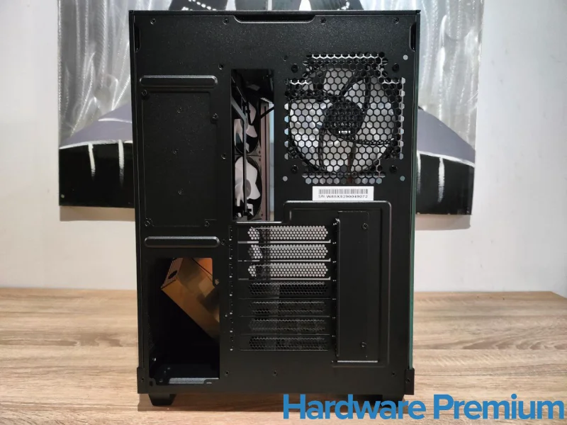 En la parte trasera, el equipo se completa con un Light Wings LX 120 mm estándar, configurado como salida de aire. Este modelo opera a 1.600 RPM, con un flujo de aire superior (51,5 cfm), aunque con un menor nivel de ruido, 25,5 db(A). Esto permite expulsar eficazmente el aire caliente acumulado sin generar turbulencias perceptibles.