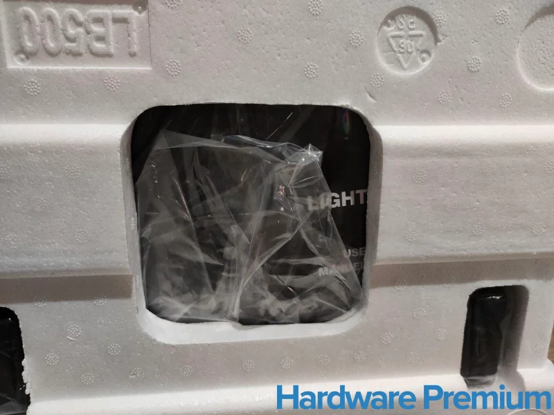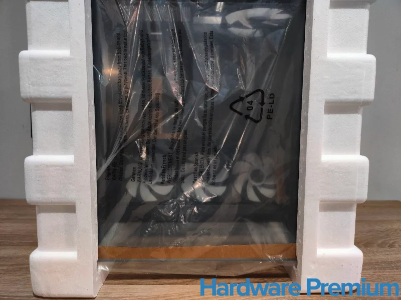 En el interior, la torre está asegurada entre dos bloques de foam de alta densidad. El conjunto se complementa con una bolsa plástica protectora, evitando arañazos o acumulación de polvo.