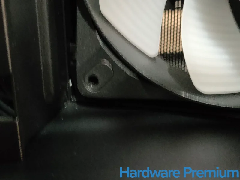 En nuestra unidad, los ventiladores laterales llegaron desencajados, lo que apunta a un posible golpe durante el transporte o un fallo de ajuste en fábrica. Los orificios de anclaje del soporte resultan algo pequeños, y para corregir el problema fue necesario retirarlo completamente. Además, el formato “pecera” hace que la parte superior sea más flexible de lo deseable una vez se retiran los paneles, pudiendo doblarse ligeramente al aplicar presión.