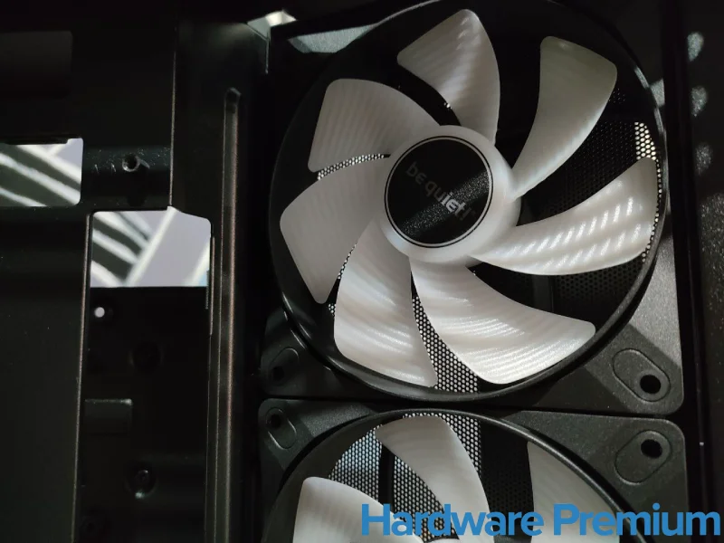 Su sistema de ventilación es, sin duda, uno de sus puntos más fuertes. Los cuatro ventiladores Light Wings LX ARGB combinan un flujo de aire excelente con un nivel sonoro reducido, consiguiendo mantener temperaturas controladas incluso bajo carga sin renunciar al silencio característico de la marca. Además, el uso de paneles perforados y filtros antipolvo en todas las zonas importantes demuestra una atención al detalle que roza la perfección.
