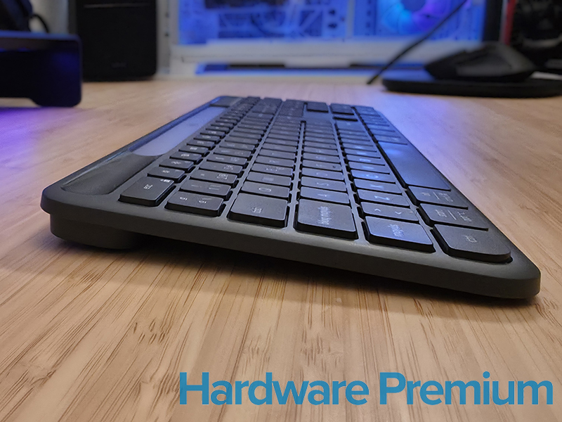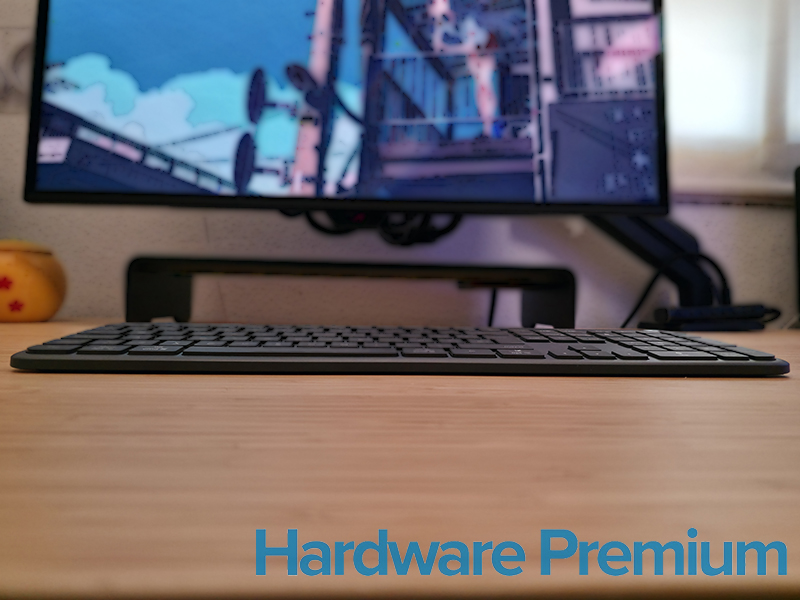 Las teclas de perfil bajo adoptan el formato isla con un recorrido corto y preciso. El tacto es firme, con una ligera textura rugosa que mejora el agarre y reduce errores. Es un teclado silencioso, ideal para trabajar en entornos compartidos o grabar sin ruido mecánico.
