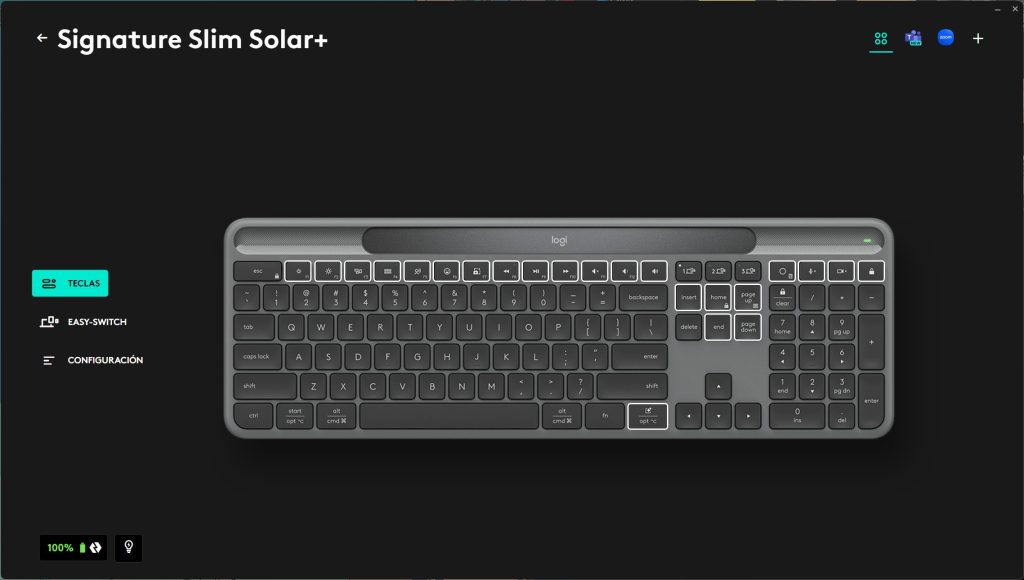 Más allá del diseño, el Logitech Signature Slim Solar+ K980 demuestra que un teclado de membrana puede ser algo más que un conjunto de teclas. Logitech ha cuidado los detalles funcionales, integrando atajos, teclas inteligentes y opciones de personalización que lo hacen mucho más versátil de lo que aparenta.