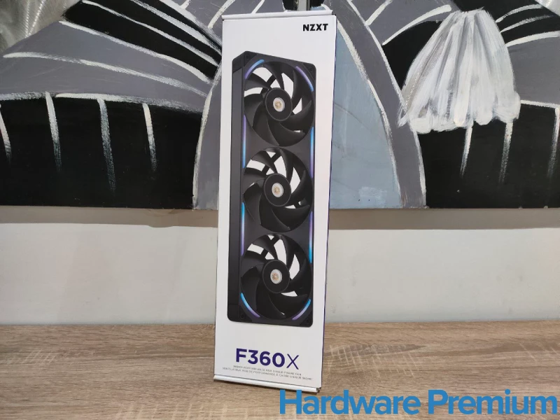 El NZXT F360X llega en una caja alargada y muy vistosa, donde ya se deja ver el concepto de marco único con triple ventilador desde la propia portada. En la parte trasera encontramos una foto del ventilador instalado y un resumen de sus principales virtudes, mientras que en los laterales encontramos el logo característico de la marca.