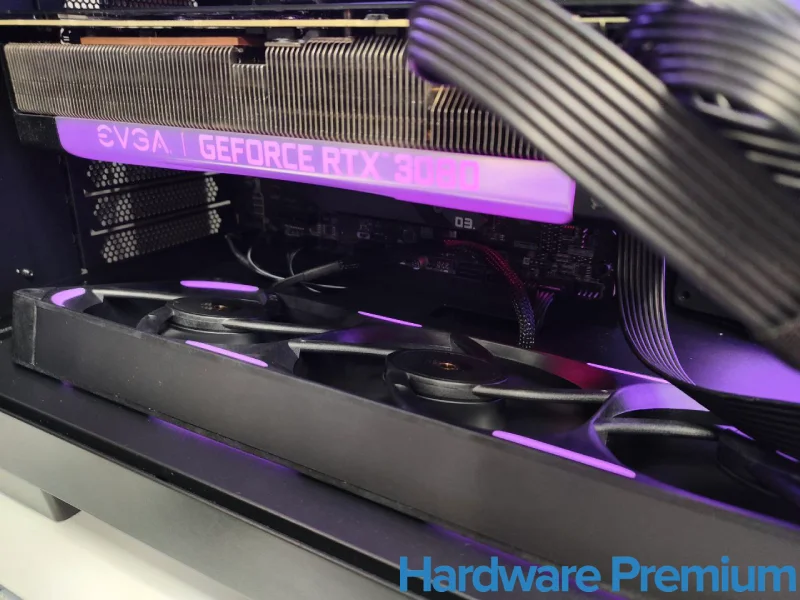 Para poner a prueba el NZXT F360X en un escenario realista y exigente, lo instalamos en la parte inferior de una EVGA RTX 3080 FTW3, una tarjeta gráfica que destaca no solo por su consumo, sino también por el completo sistema de telemetría ICX, capaz de mostrar temperaturas detalladas más allá del núcleo: memorias, fases de alimentación y distintos puntos críticos del PCB. Esto nos permite medir con mayor precisión el impacto real del flujo de aire adicional.