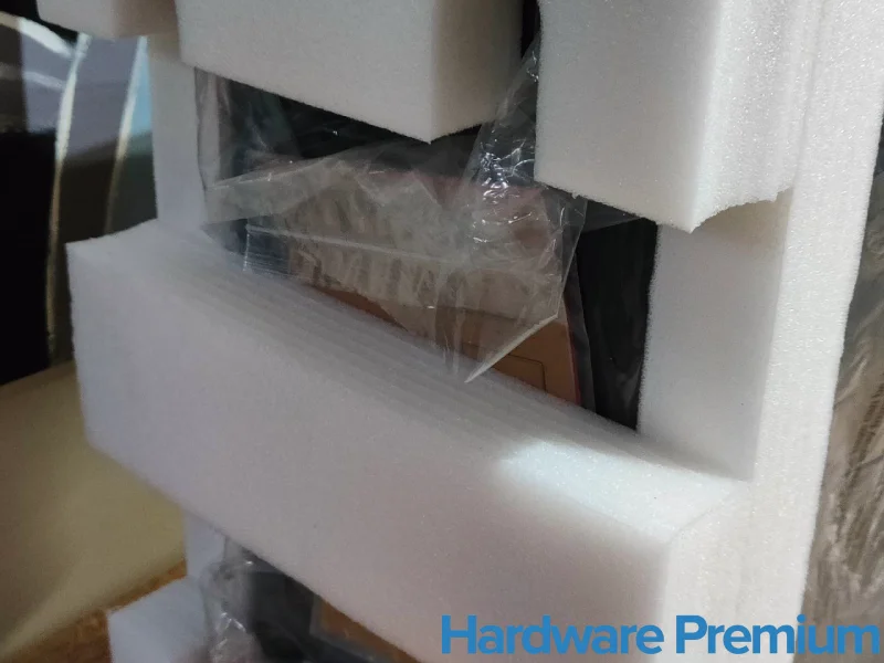 Al abrirla nos encontramos con el clásico “sándwich” de espuma de alta densidad que abraza el chasis por la parte superior e inferior, acompañado de una bolsa de plástico que lo aísla del polvo y de posibles roces. La espuma cubre por completo las zonas más delicadas y deja un hueco para el pequeño paquete de documentació, evitando que se mueva durante el transporte.