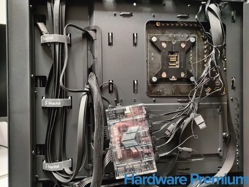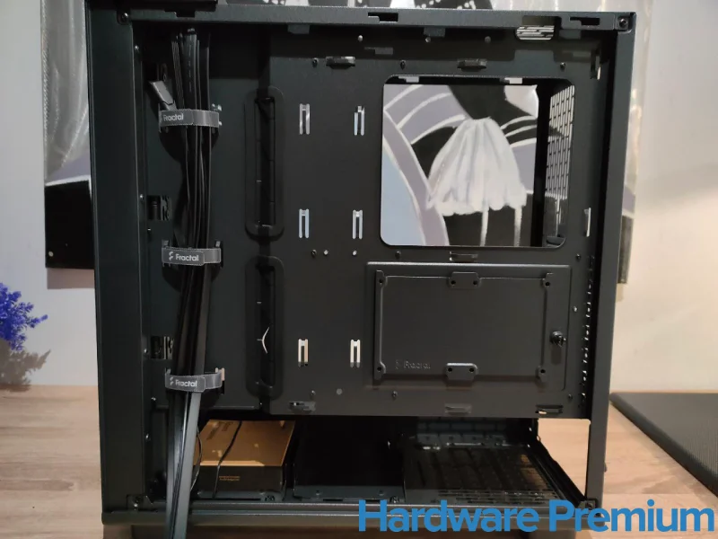 La Fractal Epoch cumple en materia de organización de cables, pero no destaca. Como ya adelantamos en apartados anteriores, la cámara trasera ofrece menos espacio del ideal, lo que condiciona bastante el proceso de ordenado, especialmente cuando se utilizan fuentes con cableado grueso, extensiones o hubs adicionales.