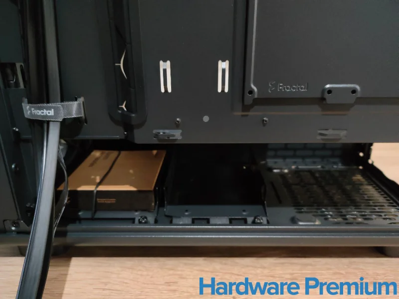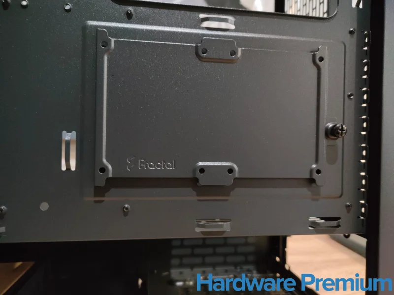La bandeja metálica para SSD de 2,5″ sigue siendo un buen detalle, con un tornillo cautivo y el logotipo de Fractal grabado. Se desmonta fácilmente y permite un montaje rápido.