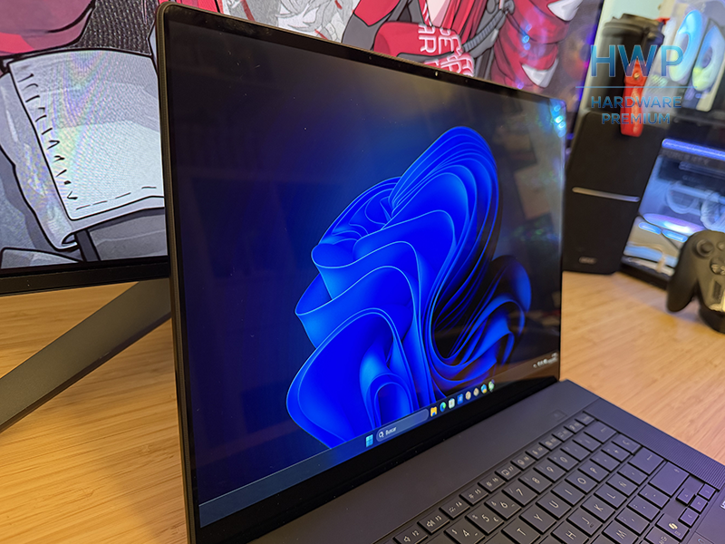 La pantalla es táctil y cuenta con un recubrimiento anti-glare, algo poco habitual en paneles OLED. Este acabado reduce reflejos sin apagar el color, lo que permite trabajar con luz ambiental intensa sin distracciones. En uso real, la imagen mantiene viveza y resulta cómoda para largas sesiones.