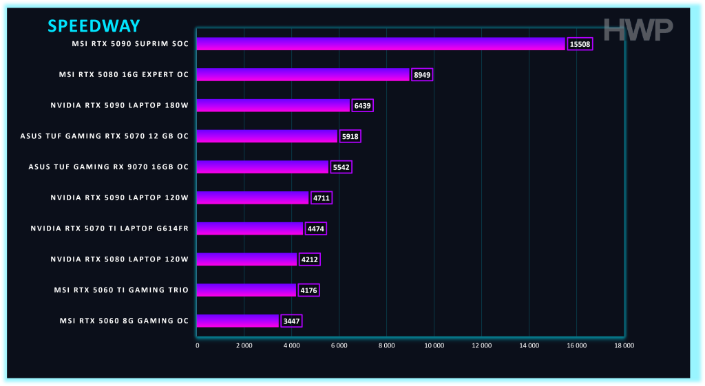 - Ray Tracing: en 3DMark Speedway rinde de forma consistente y estable, con un comportamiento térmico controlado, clave en sesiones largas.