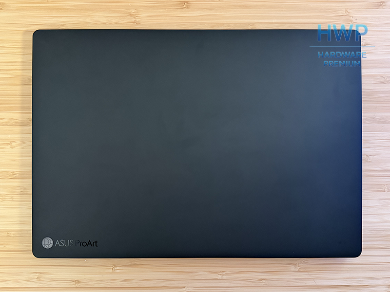 La tapa se siente rígida y resistente, sin flexiones apreciables al manipularla. El logotipo ProArt aparece de forma discreta en una esquina, sin romper el diseño limpio. Las bisagras ofrecen buena firmeza y permiten abrir el portátil con una sola mano. El movimiento es suave y transmite sensación de durabilidad. El equipo cuenta con certificación MIL-STD-810H, pensada para soportar viajes y un uso diario exigente. Este detalle refuerza su enfoque profesional.