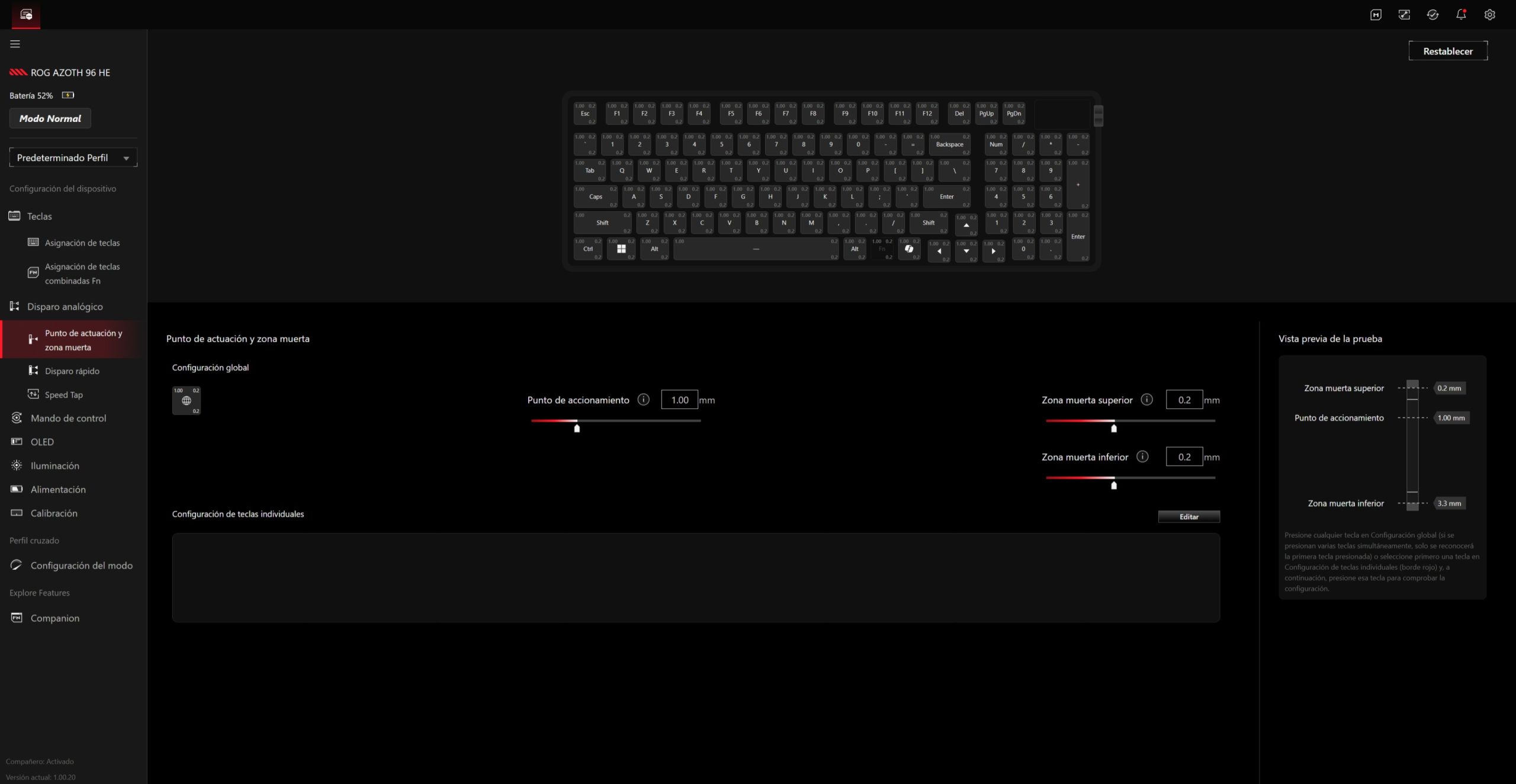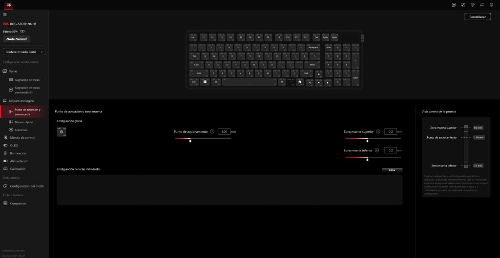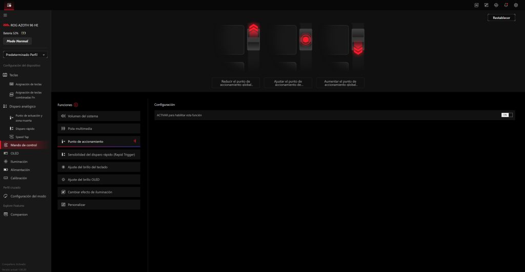 - Ajustar el punto de activación global o por tecla.