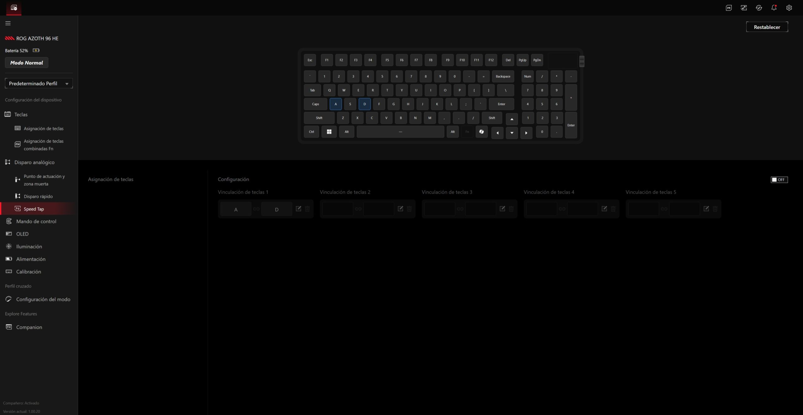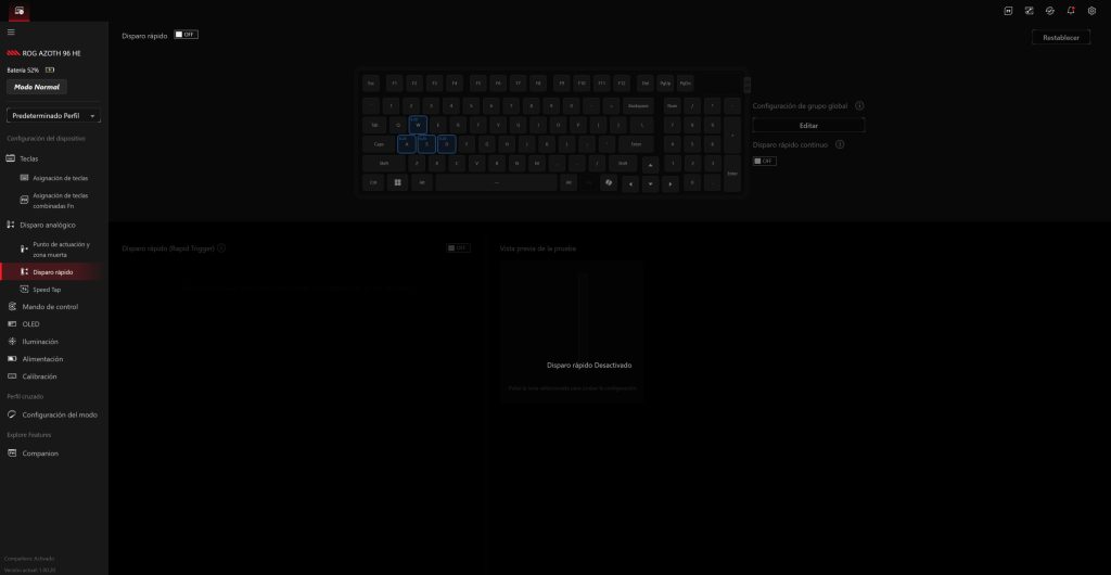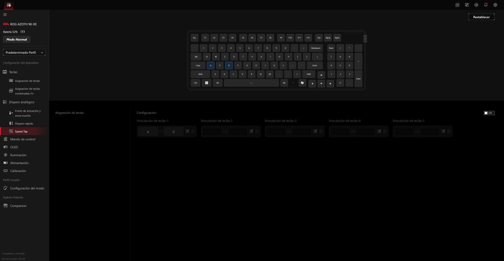 - Speed Tap: prioriza la última tecla pulsada en movimientos opuestos (muy útil en FPS para cambios rápidos de dirección).