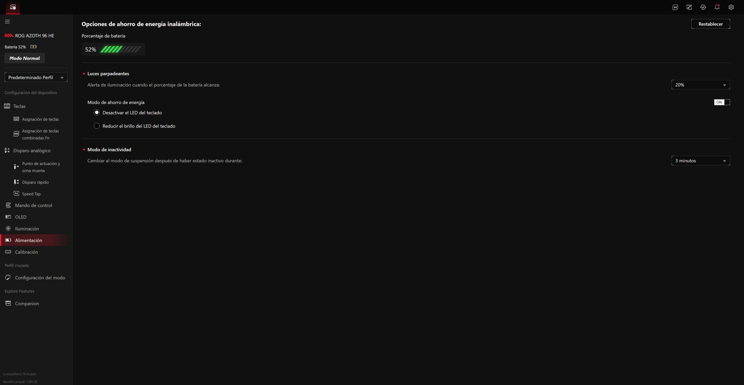 | Autonomía (referencia) | ~100 h con brillo moderado (según uso y configuración) 2,4 GHz / BT La OLED y la iluminación influyen bastante en la duración real |