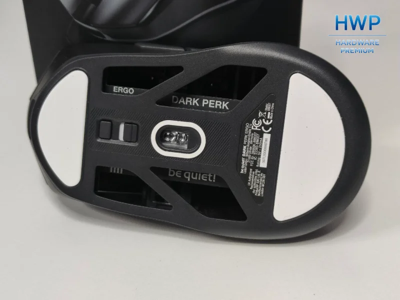 En la base del be quiet! Dark Perk Ergo encontramos un diseño muy trabajado, con una estructura aligerada mediante aberturas. Visualmente es una zona más “técnica” que estética, donde todo parece orientado a reducir peso y optimizar el comportamiento dinámico del ratón.
