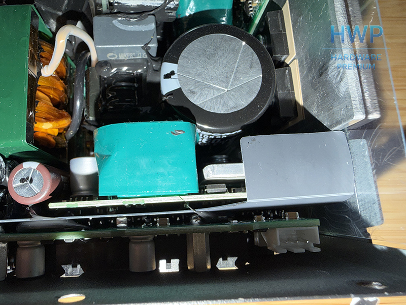 El OEM es HEC, un fabricante con amplia experiencia en fuentes de gama media-alta. La topología emplea APFC (Active Power Factor Correction) en el primario con controlador Champion CM6500UNX y diseño double forward, mientras que en el secundario encontramos rectificación síncrona y conversión DC-DC para los raíles menores. Es una arquitectura habitual en modelos actuales bien planteados.